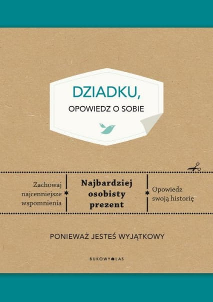 Darowując książkę „Dziadku, opowiedz o sobie”, dajesz swojemu dziadkowi więcej niż pięknie wydaną, ładnie oprawioną, nienapisaną jeszcze historię. Dajesz mu poczucie, że jest dla Ciebie ważny. Dzięki odpowiedziom na proste i wnikliwe, zawarte w dzienniku pytania dajesz dziadkowi możliwość spisania losów i wspomnień, przelania uczuć co sprawi, że dotąd puste strony dziennika staną się dla niego podarunkiem bardzo osobistym, a dla Ciebie i całej rodziny będą stanowić bezcenną pamiątkę. Pomocą dla dziadka w spisywaniu dziejów są zawarte w książce inspirujące, krótkie teksty dotyczące obyczajów, kuchni, kultury, mody itd. z czasów jego młodości. Daj swojemu dziadkowi tę książkę jako prezent. Pokaż mu, że chcesz wiedzieć wszystko o jego wspomnieniach, marzeniach i pragnieniach. Odpowiadając na nieoczekiwane i czasami zabawne pytania dotyczące takich tematów, jak dzieciństwo, szkoła, hobby, przyjaźń, pierwsza miłość, ojcostwo, kariera zawodowa, twój dziadek krok po kroku spisze historię swojego życia. Stworzy wyjątkową i osobistą książkę, dzięki której naprawdę go poznasz. „Dla przyszłych pokoleń cenne będzie nie to, co posiadamy, lecz świadectwo, kim byliśmy i opowieść, jak żyliśmy. Tym, co należy uwiecznić, są rodzinne historie”. Ellen Goodman