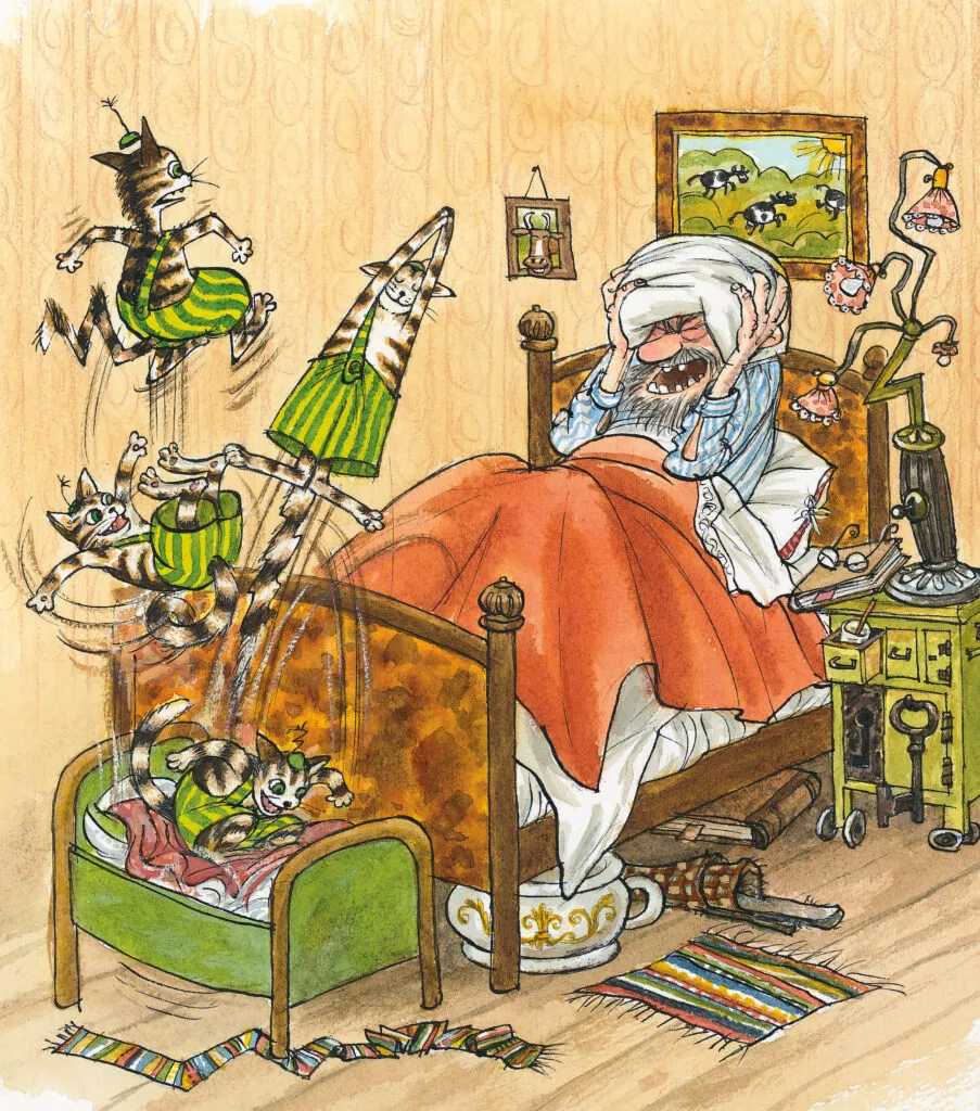 Kolejna opowieść o przygodach spokojnego staruszka Pettsona i jego niezwykłego kota Findusa. Findus codziennie o czwartej rano rozpoczyna serię skoków po swoim nowym łóżku. Pettson ma już tego dość i ostrzega kota, że jeśli Findus nie skończy skakać, będą musieli wynieść łóżko. Kot uważa, że jest to doskonały pomysł – będzie mógł wówczas skakać po łóżku, ile tylko zechce. Czy jednak mieszkanie w samotności jest naprawdę fajne? A jeśli w okolicy pojawi się lis?