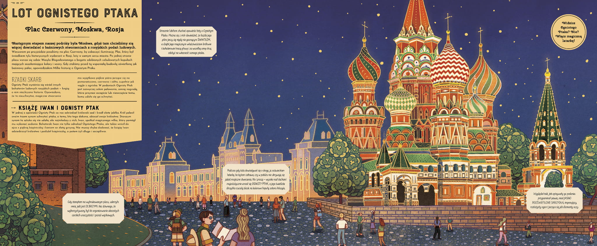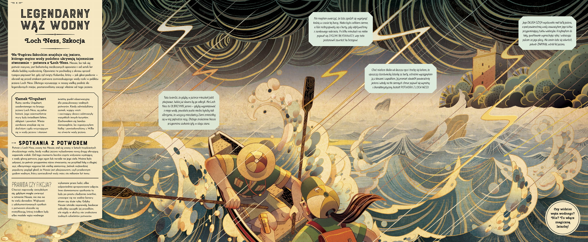 Grobla Olbrzyma w Irlandii Północnej lub Góry Harzu w Niemczech. Plac Czerwony w Rosji lub Panteon w Grecji. Samarkanda w Uzbekistanie lub Chichen Itza w Meksyku. Syreny, smoki i gargulce. Kraken, jednorożec i Wielka Stopa. Istoty z legend wszystkich kontynentów pojawiają się w książce „Magiczne stwory i mityczne bestie". Znajdziemy w niej króciutkie historyjki (przyznaję, że spodziewałam się czegoś więcej) i ładne ilustracje (autorstwa Victo Ngai), które na pierwszy rzut oka pokazują rzeczywistość jaką znamy. Dopiero użycie „magicznej latarki" pozwala dostrzec potwory i fakt ten jest TAK SUPER, że moje wewnętrzne dziecko zapiszczało z radości. Hawkins oraz Ngai stworzyli tytuł, który rozbudza wyobraźnię i zachęca do poznawania stworzeń z mitów. Obnażają fałsz niektórych historii, a wszystko to dzieje się w towarzystwie subtelnej warstwy fabularnej — Profesor zabiera córkę Millie w podróż dookoła świata — i tak jak mnie ten zabieg do siebie nie przekonał, tak młodszy czytelnik zdecydowanie go doceni, a to jeden z tych tytułów wyłącznie dla niego, więc nic nie jest ważniejsze. Rozbudzanie wyobraźni dzieci i zachęta, by poznawać mitologie różnych kultur —oto, co tytuł ten oferuje i zdecydowanie to doceniam. A mały czytelnik, który pomógł mi ocenić tę książkę, był nią równie zachwycony, co ja! Żałuję tylko, że nie udało mi się pokazać Wam tego tytułu przed świętami, ale pewnie nie jeden raz będziecie jeszcze szukać prezentu dla młodszych, więc oto moja podpowiedź! przekł. Piotr Pieńkowski