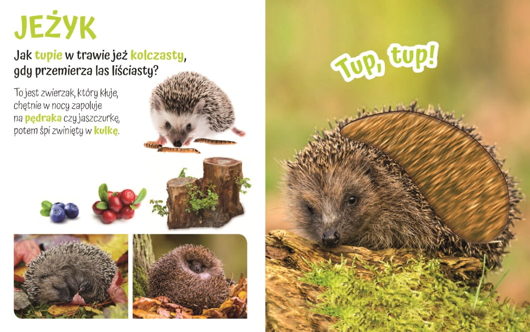 Urocza kartonowa książeczka DOTYKOWA dla MALUSZKA – na okładce i na każdej rozkładówce WKŁADKA Z FUTERKIEM. Różne FAKTURY futerek zapewniają przyjemne WRAŻENIA SENSORYCZNE. Estetyczna i ciekawa prezentacja DZIKICH ZWIERZĄTEK. ZACHWYCAJĄCE ZDJĘCIA, RYMOWANE PYTANIA i SYMPATYCZNE WIERSZYKI angażują do zabawy i poznawania świata zwierząt dzikich. Urocza książeczka dla maluszków o DZIKICH ZWIERZĄTKACH. Dzięki niej dziecko DOTKNIE zwierzątek, przekona się, jakie są MIĘCIUTKIE, a także pozna ich NAZWY i GŁOSY. Książka zawiera RYMOWANE PYTANIA dotyczące głosów zwierząt oraz ciekawe WIERSZYKI, z których mały Czytelnik dowie się, nie tylko jakie nazwy noszą DZIKIE ZWIERZETA, lecz także, co one lubią JEŚĆ i jakie mają ZWYCZAJE. Najważniejsze słowa zostały WYRÓŻNIONE kolorami. Każdy maluszek z pewnością chętnie sprawdzi, jakie w DOTYKU są SARENKA, NIEDŹWIADEK lub ZAJĄCZEK!
