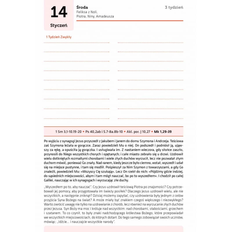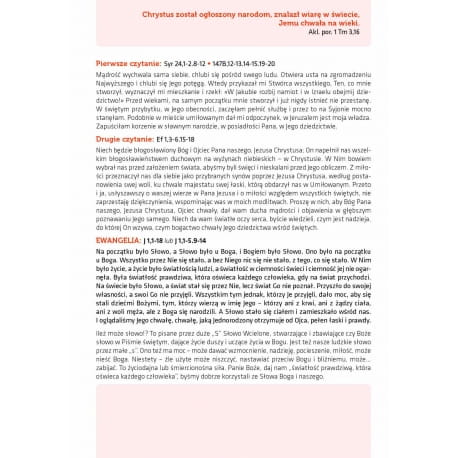 Oddajemy do rąk Czytelników kolejne wydanie AGENDY BIBLIJNEJ, z której – jak wiemy – korzystają duchowni i świeccy spragnieni codziennego kontaktu z Pismem Świętym. Istotnym elementem tego szczególnego kalendarza są komentarze, które przypominają niepodważalną prawdę, że Bóg jest stałe z nami i nigdy nas nie opuszcza. Jak również to, że życie ludzkie jest darem szczególnym Bożej miłości i powinniśmy je przeżywać z wdzięcznością. A właśnie codzienne obcowanie ze Słowem Bożym otwiera nasze serca na zbawczą prawdę, nakłania je do nawrócenia i staje się źródłem mocy ducha na drogach ku wieczności. Bóg jest bowiem Panem czasu – także tych dni, które nadchodzą w roku 2026. Wydawnictwo Verbinum