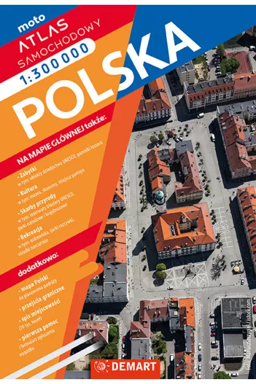 Atlas samochodowy. Polska 1:300 000 znakomicie łączy na mapie aktualne informacje drogowe z lokalizacją i opisem miejsc i obiektów zabytkowych, rekreacyjnych oraz ze wskazaniem najcenniejszych dóbr kultury i natury. Podstawowa mapa przeznaczona jest nie tylko dla kierowców, ale i dla turystów, którzy podróżują po Polsce i lubią odkrywać nowe miejsca. Najważniejsze atuty atlasu to: aktualna i szczegółowa sieć dróg numeracja dróg informacje o atrakcjach turystycznych i rekreacji granice parków narodowych i krajobrazowych praktyczny skorowidz miejscowości (ponad 70 tys. nazw) - mapa przeglądowa Polski w skali 1 : 750 000 Polska dla dzieci łączy w sobie cechy przewodnika turystycznego i atlasu samochodowego. Przeznaczona jest dla dzieci, które już same czytają (lub dopiero opanowują tę sztukę) i zachęca je do samodzielnego odkrywania atrakcji. Umożliwia też śledzenie trasy podróży, gdyż na mapach drogi (szybkiego ruchu i krajowe) mają poprawny przebieg i są oznakowane numerami, tak jak w atlasach samochodowych dla dorosłych. Książka zaspokaja więc elementarną ciekawość dziecka i dostarcza odpowiedzi na takie pytania jak: Co warto zobaczyć? Gdzie to jest? Jak tam dojechać? Na mapach oprócz dróg umieszczono setki kolorowych rysunków odpowiadających różnym rodzajom atrakcji: zamkom, pałacom, twierdzom, pięknym plażom, latarniom morskim, portom i lotniskom, starym kościołom i cerkwiom, skansenom, miejscom związanym z bohaterami bajek, parkom narodowym i rezerwatom, starym drzewom? Niemal wszystkie te atrakcje zostały opisane w alfabetycznie ułożonych hasłach, przy czym przyporządkowano je do 6 regionów Polski: Pomorza, Wielkopolski i Kujaw, Śląska, Warmii i Mazur, Mazowsza i Podlasia oraz Małopolski. Dzięki temu zabiegowi dzieci mogą utrwalić sobie kolejność liter w alfabecie, a także łatwiej im