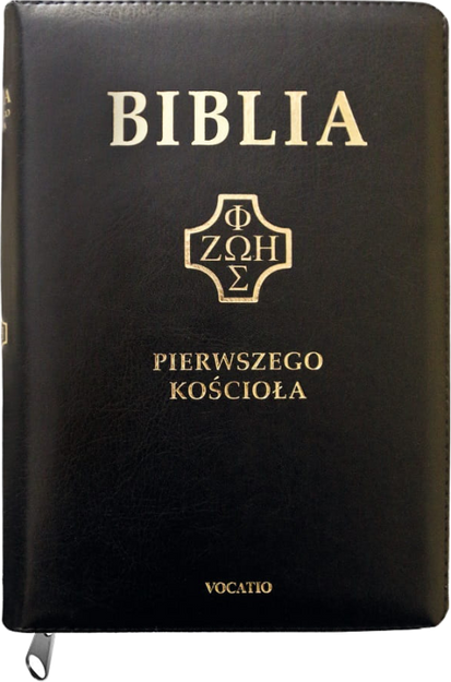 Biblia pierwszego Kościoła - eko-skóra PU z zamekiem, paginatorami (index, wciecia), ze złoconymi brzegami kartek, w czarnym kolorze oprawy. JEDYNY POLSKI PRZEKŁAD BIBLII ZREALIZOWANY NA PODSTAWIE NAJSTARSZYCH MANUSKRYPTÓW, KTÓRE BYŁY W UŻYCIU W CZASACH JEZUSA I APOSTOŁÓW. Większość polskich przekładów Starego Testamentu została zrealizowana w oparciu o teksty masoreckie, które są o tysiąc lat późniejsze niż manuskrypty, których użyto do przekładu Biblii pierwszego Kościoła. Dodatkową cechą wyróżniającą to wydanie Biblii spośród innych jest to, że księgi deuterokanoniczne wyróżnione zostały drukiem w kolorze granatowym, a słowa Jezusa wydrukowano kolorem czerwonym. Starochrześcijański znak ΦΩΣ-ΖΩΗ (FOS-DZOE) znajdujący się na okładce i stronie tytułowej tej Biblii znaczy ŚWIATŁO-ŻYCIE. Symbolicznie odnosi się on do Jezusa Chrystusa, który tymi właśnie słowami określał sam siebie (por. J 8,12; J 12,46 oraz J 11,25; J 14,6). Znak ten był znany i używany już w IV w. przez chrześcijan na terenach Syrii. „Biblia pierwszego Kościoła, to monumentalne dzieło translatorskie dokonane przez: ks. prof. Remigiusza Popowskiego SDB, stanowiące jego opus vitae, za co otrzymał nagrodę Stowarzyszenia Wydawców Katolickich DIAMENTOWY FENIKS”. ks. prof. zw. dr hab. Waldemar Chrostowski, Członek Komitetu Teologicznego Polskiej Akademii Nauk, Laureat Nagrody Ratzingera (2014) „Wybitne tłumaczenie Pisma świętego ks. Remigiusza Popowskiego, jakim jest Biblia pierwszego Kościoła, ze wszech miar zasługuje na uwagę i popularyzację. Jest to pierwsze tłumaczenie uwzględniające najstarsze greckie manuskrypty Starego Testamentu (zwane powszechnie Septuagintą), które są niezwykle ważne dla nauk biblijnych, filologii starożytnej i całej humanistyki. Z tych bowiem manuskryptów pochodzą liczne cytaty biblijne występujące w Nowym Testamencie”. ks. prof. dr hab. Krzysztof Bardski, Kierownik Katedry Hermeneutyki Biblijnej UKSW, Ekspert Nauk Humanistycznych Narodowego Centrum Nauki „Biblia pierwszego Kościoła – przekład na język polski dokonany przez ks. prof. Remigiusza Popowskiego SDB – to diament polskiej biblistyki, który łączy Septuagintę – najstarszy grecki przekład Biblii hebrajskiej z Nowym Testamentem. Dzięki lekturze tego dzieła polski czytelnik będzie mógł głębiej zrozumieć i doświadczyć duchowego bogactwa pierwszych wspólnot chrześcijańskich, które oddychały Bożym słowem zawartym na kartach Starego i Nowego Testamentu. Koherentny przekład wybitnego znawcy języka greckiego z pewnością pozwoli dostrzec moc i blask słowa Bożego, które w Chrystusie znajduje swoje wypełnienie”. ks. prof. dr hab. Mirosław S. Wróbel, Dyrektor Instytutu Nauk Biblijnych KUL „Pierwszy Kościół czerpał swoją wiarę ze słuchania słowa Bożego, zwłaszcza z medytacji słów Chrystusa. W ich świetle odczytywał również Objawienie Boże zawarte w księgach Starego Przymierza. Biblią rozważaną przez autorów Nowego Testamentu, Kościół apostolski i pisarzy wczesnochrześcijańskich była Septuaginta, to jest greckie tłumaczenie Starego Testamentu, z rozszerzonym kanonem ksiąg świętych. Jedynym polskim przekładem tej Biblii, zrealizowanym na podstawie najstarszych manuskryptów, będących w użyciu w czasach Jezusa i Apostołów, jest tłumaczenie ks. prof. Remigiusza Popowskiego SDB, przygotowane przez Oficynę Wydawniczą VOCATIO. Wraz z przekładem Nowego Testamentu dokonanym przez tego samego autora, to przystępne wydanie stanowi znakomite źródło poznania wiary pierwszego Kościoła. Dzięki niemu naukowiec, student, a także zwykły czytelnik może lepiej zrozumieć pierwotny kształt przepowiadania Dobrej Nowiny o Chrystusie, poznać charakter nauczania pierwszego Kościoła, czerpiącego pełnymi garściami z obrazów, stwierdzeń i pojęć zawartych w Septuagincie (…) Gorąco polecam to piękne i potrzebne wydanie Biblii pierwszego Kościoła. Niech studium i medytacja jej ksiąg pogłębia i czyni fascynującą naszą podróż po chrześcijańskiej drodze świętości”. o. dr Marek Kotyński CSSR, teolog duchowości, Papieski Wydział Teologiczny w Warszawie