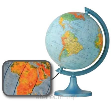 Jest to globus zawierający mapę polityczną Świata, natomiast po podświetleniu pojawia się mapa fizyczna. Więc na jednym globusie mamy 2 mapy. Świetnie nadaje się do przyswajania geograficznego położenia nie tylko państw, ale także możemy znaleźć szczyty gór, niziny, wyżyny itp.