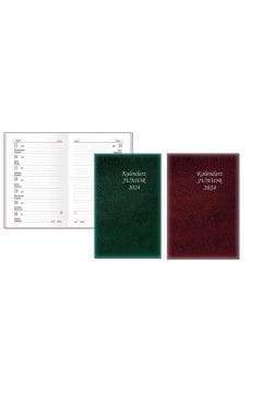 Układ: 1 tydzień na stronie Druk, papier: 2 kolory, papier 70 g/m2 w kolorze białym Kalendarium: w języku polskim, numeracja tygodni, wschody i zachody Słońca, fazy Księżyca, podwójne imieniny Oprawa: ze szlachetnych folii PCV Część informacyjna: plan roczny, miesięczny, telefony kierunkowe, skorowidz alfabetyczny, mapka z odległościami drogowymi w Polsce