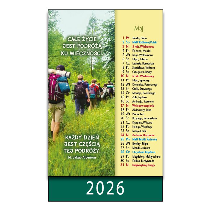 Wartość słowa Szukasz kalendarza na biurko, który będzie przypominał Ci o dobroci, miłości, zawierzeniu, pięknie? Wybierz kalendarz „Słowo”, który zachwyci Cię oryginalnymi fotografiami i budującymi cytatami. Bogate wnętrze W kalendarzu zamieszczono: każdy miesiąc na jednej stronie, kolorowe zdjęcia, mądre myśli, imieniny i święta. Inspirujące cytaty Kalendarz wyróżniają inspirujące i pełne mądrości cytaty, które przypominają o wartości ciszy i milczenia, które jest pokojem duszy. To piękne słowa, które pomogą Ci lepiej przeżyć każdy dzień 2026 roku.