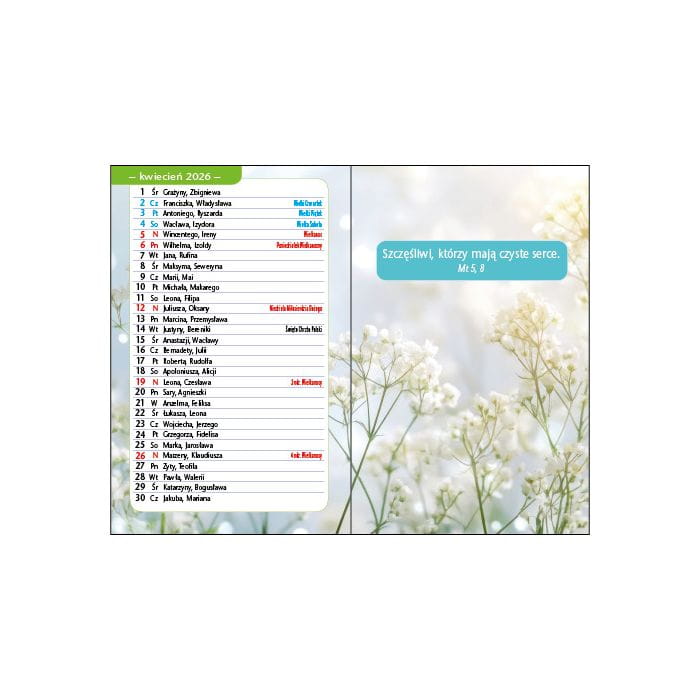 KALENDARZ 2026 SZCZĘŚCIE/KWIAT/