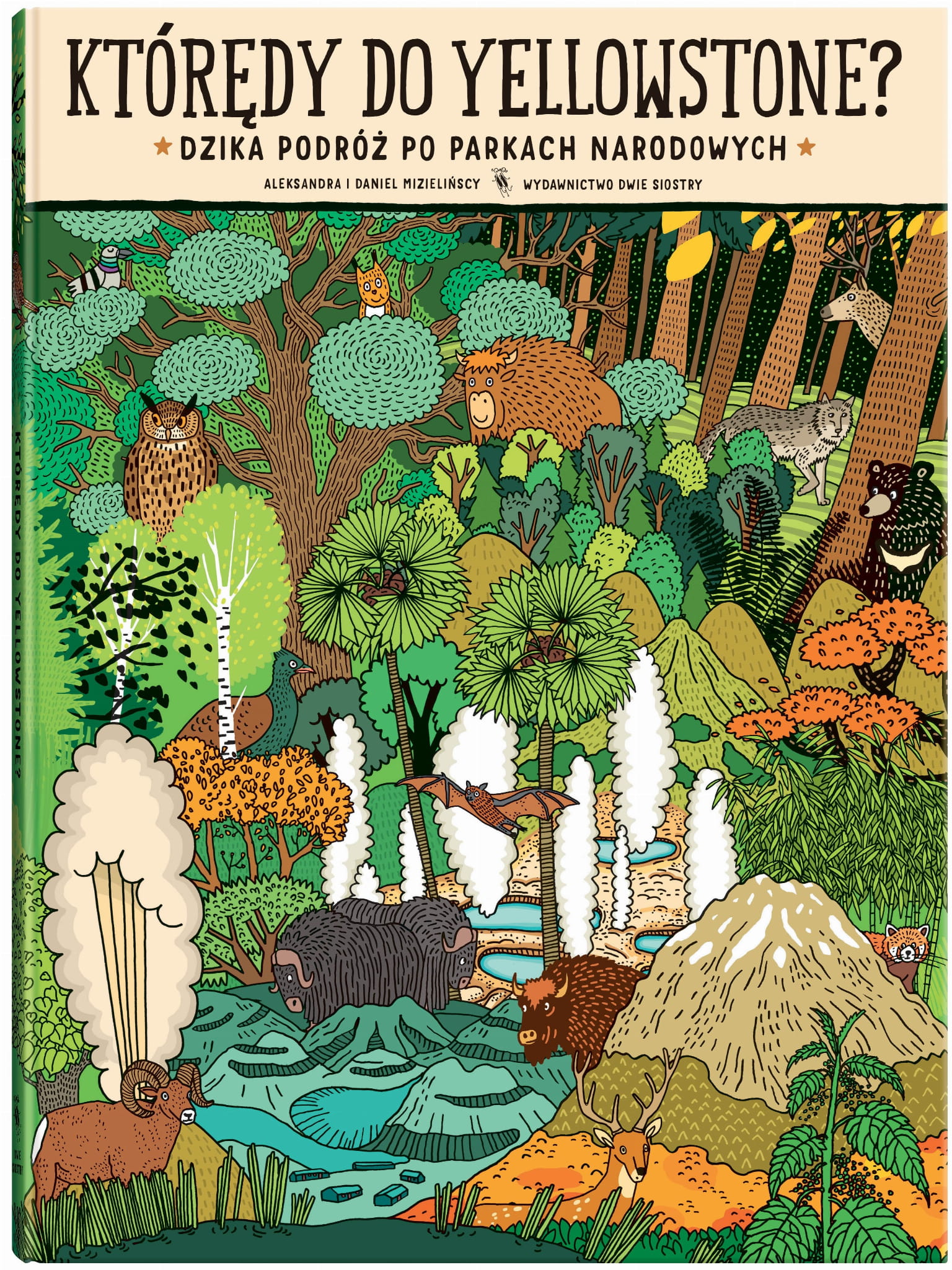 Chcesz poznać najbardziej zaskakujące ciekawostki o Matce Naturze, przy okazji odprężając się przy zabawnych i kolorowych rysunkach? Przekonaj się, jak doskonałe może być połączenie nauki z dowcipem i sięgnij po nowe dzieło Aleksandry i Daniela Mizielińskich - "Którędy do Yellowstone?". Dwoje niezwykłych, milusińskich bohaterów - ogromny, ciężki, a zarazem nieśmiały i skryty w sobie żubr Kuba oraz mała, zwinna, odważna i pełna energii wiewiórka Ula. To zwierzaki, które są od siebie zupełnie różne, połączyła je ogromna przyjaźń, która swój początek miała w sercu Puszczy Białowieskiej. Niespodziewanie, nie wiadomo od kogo, otrzymują tajemniczy list z Ameryki i wybierają się w długą, fascynującą podróż tropami dzikiej przyrody.W trakcie swojej niezapomnianej wycieczki będą mieli okazję poznać bliżej aż 8 niesamowitych parków narodowych z każdego zakątka świata. Rozpoczynając od Yellowstone w Ameryce, przez Park Narodowy Grenlandii, aż do Parku Narodowego Komodo - każde miejsce na Ziemi jest warte odkrycia, czego ta dwójka niewątpliwie doświadczy. Będą mieli okazję odwiedzić puszczę amazońską oraz przekonać się, jak naprawdę wygląda pustynia afrykańska. Trafią nawet do lasu bambusowego w Chinach - ulubionego miejsca biało-czarnych niedźwiadków. Oprócz zwiedzania wcześniej nieznanych im miejsc i zdobywania wiedzy na temat świata poznają także wiele wyjątkowych zwierzaków, z którymi uda im się zawrzeć przyjaźnie.Książka odpowiada na wiele intrygujących i nieoczywistych pytań ze świata przyrody. Natura jest tak niesamowita i nieprzewidywalna, że trudno jest wiedzieć o niej dosłownie wszystko. "Którędy do Yellowstone?" jest skarbnicą wiedzy, która naprawdę może zaskoczyć niejednego czytelnika. Jakie wspólne cechy ma bizon i żubr? Czym jest i na czym dokładnie polega noc polarna? Jak to jest, że niektóre zwierzaki żyją tylko na upalnej pustyni, a inne jedynie na terenach Arktyki? Odpowiedzi na wszystkie te pytania zawiera najnowszy komiks dla starszych i młodszych odbiorców.Autorami "Którędy do Yellowstone?" są Aleksandra i Daniel Mizielińscy - prywatnie małżeństwo, zawodowo graficy i twórcy książek. Laureaci licznych nagród przyznawanych za projekty literackie, w tym prestiżowego międzynarodowego wyróżnienia Bologna Ragazzi Award 2010 roku. Ich najpopularniejsze dzieła to "Miasteczko Mamoko", "Co z Ciebie wyrośnie?" oraz "Pod ziemią, pod wodą".