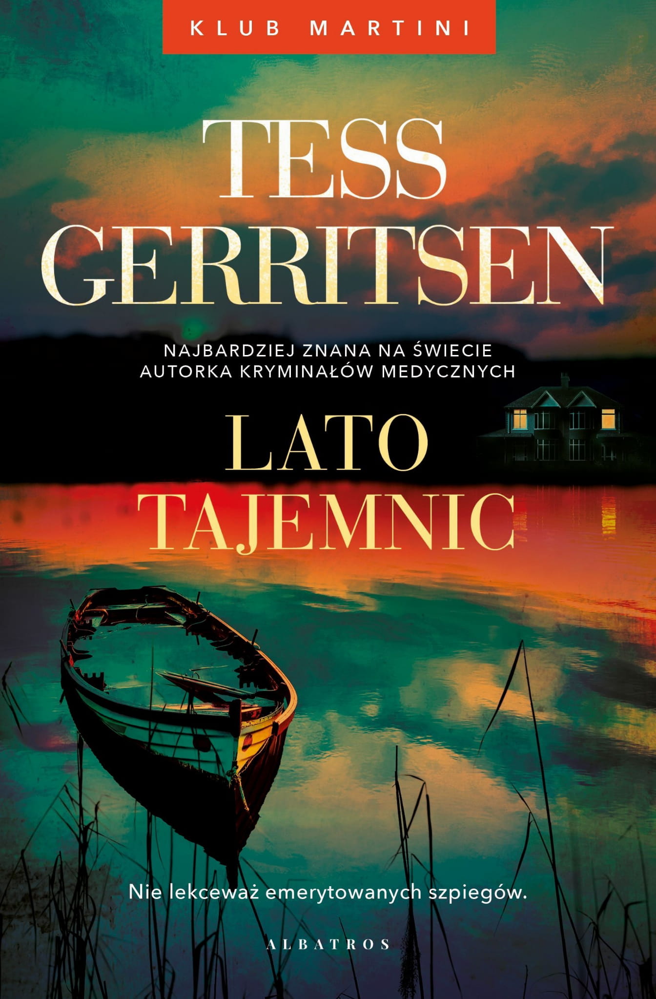 KLUB MARTINI NIE JEST OTWARTY DLA WSZYSTKICH… Klub Maggie Bird nie jest zwykłą grupą czytelniczą – należą do niego emerytowani szpiedzy CIA prowadzący anonimowe życie w nadmorskim miasteczku Purity. Nadchodzące lato planowali spędzić na „czytaniu“ (z kieliszkami martini w dłoniach) i ukradkowej obserwacji ptaków. Ale wygląda na to, że wraz z przybyciem wakacyjnych gości kłopoty same ich znalazły…Pełniącej obowiązki komendanta policji Jo Thibodeau sezon urlopowy przynosi znane już problemy – zakorkowane ulice, bójki w barach, drobne kradzieże. Ale w tym roku dołącza do nich nowy kłopot: tajemnicze zaginięcie nastolatki nad jeziorem.Kiedy sąsiad Maggie staje się głównym podejrzanym w sprawie zniknięcia dziewczyny, członkowie Klubu Martini odkładają lornetki i zakasują rękawy. A to oznacza, że Jo Thibodeau będzie musiała stawić czoła nie tylko wpływowej rodzinie, desperacko poszukującej odpowiedzi na pytanie, co się stało z zaginioną – ale także z grupie wścibskich emerytów.Czy Jo Thibodeau i członkowie Klubu Martini, którzy właśnie trafili na jeden z najbardziej zbrodniczych skandali, jakie kiedykolwiek widziało ich miasteczko, znajdą sposób, by wspólnie rozwiązać tę sprawę?Druga odsłona „Klubu Martini“, serii thrillerów szpiegowskich z byłą agentką CIA Maggie Bird w roli głównej.Autorka bestsellerowego cyklu „Rizzoli & Isles“, Tess Gerritsen, przedstawia mrożącą krew w żyłach kontynuację „Wybrzeża szpiegów“, w której emerytowani szpiedzy próbują rozwiązać zagadkę zaginięcia nastolatki i ze zdziwieniem odkrywają, że ta sprawa może być powiązana z ich własną przeszłością.„Czwartkowy Klub Zbrodni“ na sterydach.SAGA MagazineUwielbiam tę serię. „Lato tajemnic“ to niesamowita zagadka kryminalna – nie mogłam się oderwać!Shari Lapena