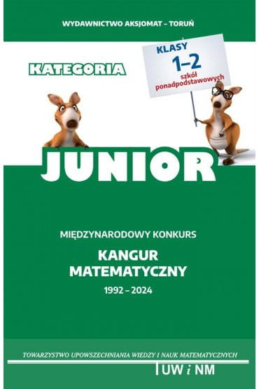 Testy konkursu międzynarodowego "KANGUR MATEMATYCZNY" wraz z rozwiązaniami, począwszy od 1992 roku dla poziomu wiekowego "JUNIOR" (klasy III gimnazjów, I liceów i techników, I, II, III szkół branżowych) . Całkiem nowy, ciekawy i kolorowy skład. Testy zadań konkursowych na inne poziomy znajdziesz w kolejnych tomach serii "Matematyka z wesołym Kangurem". Ta książka jest następcą tzw. "niebieskiego" kangura, który począwszy od roku 2015 został rozdzielony na dwie książki - osobną dla poziomu Kadet i Junior. Książka zawiera zadania, odpowiedzi oraz rozwiązania z Kangura Matematycznego dla poziomu Junior (klasy III gimnazjów, I liceów i techników, I, II, III szkół branżowych) z lat 1992-2024.