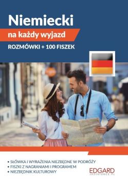 Pakiet składa się z: książki Niemiecki. Rozmówki na każdy wyjazd oraz fiszek 100 fiszek zwroty konwersacyjne. Niezbędnik każdego, kto wybiera się do Niemiec lub krajów niemieckojęzycznych w podróż służbową czy turystyczną albo planuje dłuższy wyjazd na praktyki, staż lub studia.Znajdziesz tu niezbędne zwroty i wyrażenia, dzięki którym będziesz mógł porozumieć się z niemieckojęzycznymi rozmówcami: zapytać o drogę, zrobić zakupy, poprosić o radę. Dzięki temu poradzisz sobie w różnych sytuacjach - w muzeum, na spacerze po mieście, ale i w urzędzie czy u lekarza.W Rozmówkach na każdy wyjazd znajdziesz też ciekawostki o krajach niemieckojęzycznych oraz wskazówki dotyczące kultury i zwyczajów. Część poświęcona podstawom gramatyki oraz fonetyki języka niemieckiego ułatwi porozumiewanie się i zrozumienie odpowiedzi udzielanych w tym języku. Dodatkowym ułatwieniem będzie także dwujęzyczny słownik oraz uproszczony zapis wymowy wszystkich prezentowanych zwrotów.Z Rozmówkami na każdy wyjazd:- poznasz przydatne zwroty i wyrażenia porozumiesz się w lokalnym języku z mieszkańcami,- zrozumiesz szyldy, napisy i komunikaty opanujesz podstawy wymowy,- dowiesz się więcej o Niemczech i ich mieszkańcach.Niemiecki. 100 Fiszek. Zwroty konwersacyjne to zestaw dla osób, które znają podstawy języka niemieckiego. Pakiet fiszek pomoże uzupełnić słownictwo i poznać nowe wyrażenia przydatne w konwersacjach. Każde słowo zostało przedstawione w kontekście, co ułatwi zrozumienie i zapamiętanie jego znaczenia. Pobierz nagrania wszystkich słówek i ćwicz poprawną wymowę powtarzając za lektorem!Sprawdź przygotowane metody do szybkich powtórek: możesz korzystać z kolorowych przegródek w opakowaniu oraz generować listę wybranych słówek do odsłuchu. Do torebki, plecaka, czy kieszeni, podręczny zestaw fiszek możesz zabrać ze sobą wszędzie!