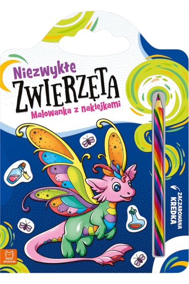 Niezwykłe zwierzęta. Malowanka z naklejkami. Zaczarowana kredka Kolorowanie rozwija zdolności manualne dziecka, jego wyobraźnię i kreatywność. Zaczarowana kredka i zestaw naklejek dołączonych do książeczki sprawią, że dziecko z radością i w łatwy sposób zamieni czarno-białe rysunki w barwne i niezwykłe zwierzęta. Zwierzaki czekają na wyjątkowe barwy!