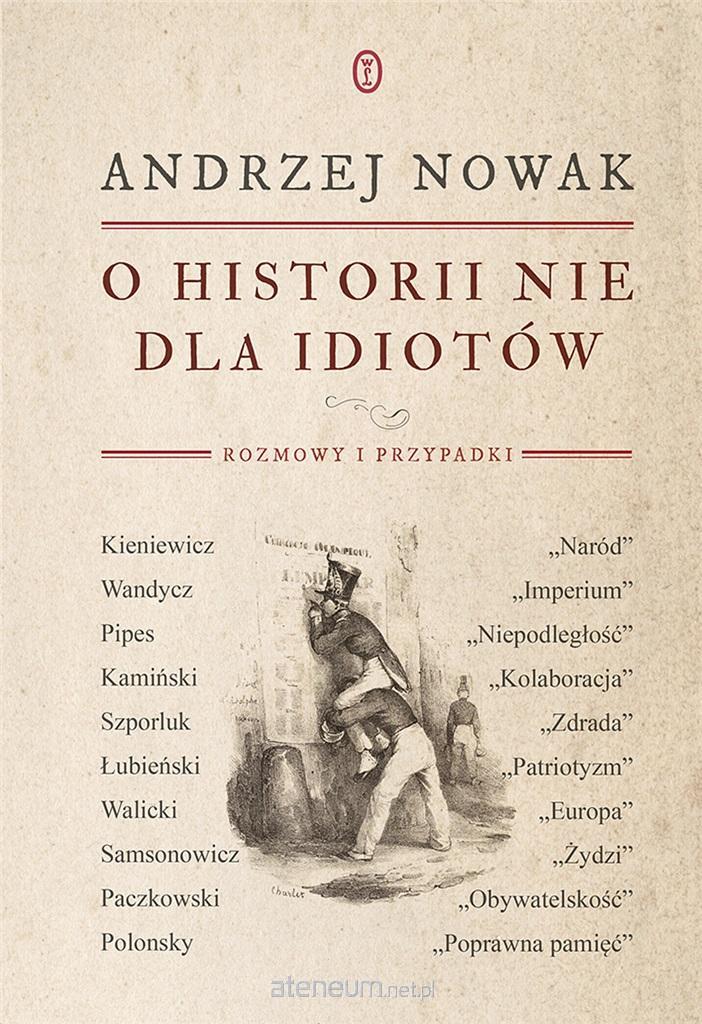 Odważne pytania, śmiałe hipotezy, wnikliwe analizy Wybitny historyk Andrzej Nowak pyta o Polskę Czy wyczerpała się zdolność historii do budowania spójnej i ważnej narracji tożsamości wspólnoty? Jaka ma być narodowa pamięć krytyczna czy monumentalna? Czy rządzą nami nieczułe, ponadnarodowe rynki, na które nie mają już wpływu decyzje podjęte w politycznych wspólnotach? Historia nie dla idiotów składa się z dwóch części: wywiadów i esejów. W pierwszej autor rozmawia ze znakomitymi eseistami oraz historykami: Piotrem Wandyczem, Andrzejem Sulimą Kamińskim, Romanem Szporlukiem, Tomaszem Łubieńskim, Andrzejem Walickim, Henrykiem Samsonowiczem, Antonym Polonskym i Andrzejem Paczkowskim. W rozmowach przewijają się pojęcia patriotyzmu, pamięci, zdrady i polityki. Przenikliwe i wielowarstwowe odpowiedzi rozmówców gwarantują czytelnikowi pogłębioną refleksję nad wspólnotą polityczną i najważniejszymi wartościami w życiu społecznym. W drugiej części książki profesor szuka odpowiedzi na pytania o polską tożsamość oraz pozycję w świecie od chrztu Polski po działalność IPN.