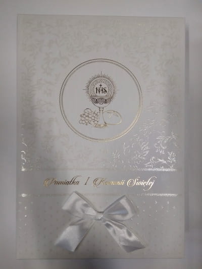 Pudełko z książeczką w środku do przechowywania kartek Komunijnych św. mix