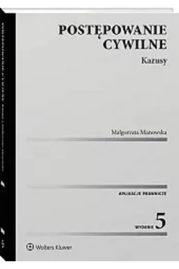 Książka stanowi zbiór 59 kazusów z postępowania cywilnego wraz z odpowiedziami i komentarzami pomocnymi aplikantom radcowskim i adwokackim w dokładnym przygotowaniu się do egzaminów końcowych. W opracowaniu zwrócono uwagę na problemy praktyczne, z jakimi może się zetknąć radca prawny i adwokat w toku sprawy cywilnej. W udzielanych odpowiedziach znajdują się odesłania do orzecznictwa Sądu Najwyższego i sądów powszechnych, praktyki sądowej, a także do poglądów doktryny. Piąte wydanie książki uwzględnia nowelizacje wprowadzone do kodeksu postępowania cywilnego kolejnymi ustawami, aż do dnia 1 stycznia 2024 r. Część kazusów, wobec pojawiających się nowych problemów w praktyce, zostało zastąpionych nowymi, część została jedynie uaktualniona, a niektóre zmienione tak, aby uwzględnić najnowsze poglądy wyrażane w orzecznictwie. Materiały wykorzystane w książce są efektem wieloletniej pracy Autorki z aplikantami radcowskimi i adwokackimi w ramach aplikacji organizowanej przez Okręgową Izbę Radców Prawnych oraz Okręgową Radę Adwokacką w Warszawie. Publikacja jest przeznaczona dla aplikantów adwokackich i radcowskich. Zainteresuje również aplikantów sądowych, studentów prawa, radców prawnych, adwokatów oraz sędziów.