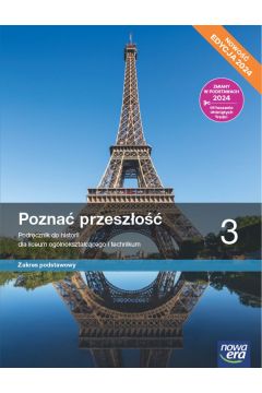 Poznać przeszłość 3. Zakres podstawowy. Podręcznik do historii dla liceum ogólnokształcącego i technikum. Szkoły ponadpodstawowe. Edycja 2024 Obejmuje materiał obejmujący wydarzenia z lat 1815-1939. Prezentuje treści z historii powszechnej i Polski w przejrzysty, łatwy do przyswojenia sposób poprzez ciekawe fotografie, infografiki oraz ilustracje. Kształci umiejętności historyczne, takie jak praca z tekstem źródłowym, mapą czy danymi statystycznymi, dzięki wykorzystaniu wielu rodzajów źródeł opatrzonych zadaniami Rozwija zainteresowanie przedmiotem m.in. za pomocą elementów Symbole epoki i To budzi kontrowersje oraz propozycji dodatkowych publikacji książkowych. Ułatwia przygotowanie do sprawdzianów dzięki przejrzystym Podsumowaniom i czytelnym osiom czasu.