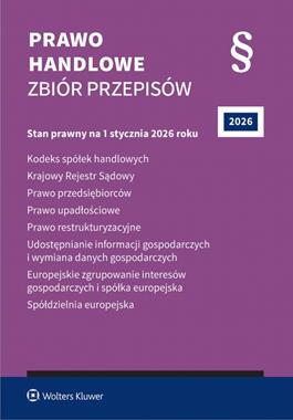 Stan prawny: 1 stycznia 2026 roku Praktyczny zbiór najważniejszych aktów prawnych z zakresu prawa handlowego. Zawiera informacje o uwzględnionych zmianach. Zastosowany system oznaczania nowych przepisów znacznie ułatwia codzienną pracę prawnika. Skorowidze do ustaw i tytuliki towarzyszące poszczególnym artykułom, poręczny format, miękka oprawa ze skrzydełkami mogącymi posłużyć za zakładki to dodatkowe atuty książki.