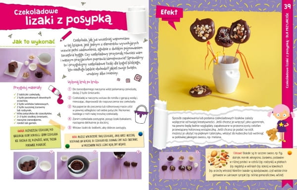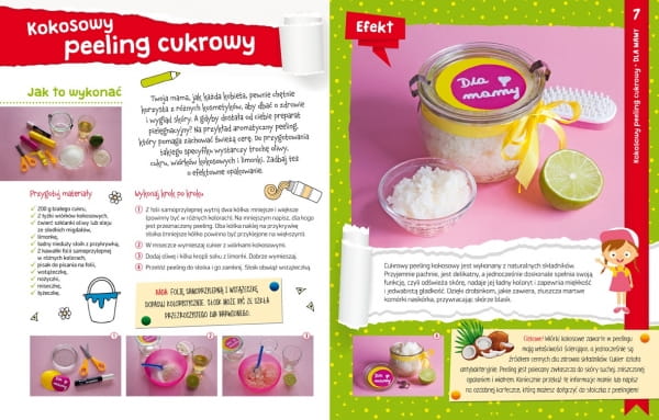 PROSTE PROJEKTY fascynujących EKSPERYMENTÓW do SAMODZIELNEGOwykonania przez dziecko. TANIE i ŁATWO DOSTĘPNE materiały potrzebne do wykonania doświadczeń. Szczegółowe INSTRUKCJE KROK PO KROKU opatrzone zdjęciami. Fantastyczne pomysły na WIELE GODZIN KREATYWNYCH ZAJĘĆ w domu i w przedszkolu. Książka uświadamia dziecku, że NAJLEPSZY PREZENT dla bliskiej osoby to taki, który został wykonany SAMODZIELNIE. Z publikacji przedszkolak dowie się, z jakich MATERIAŁÓW i w jaki SPOSÓB wykonać prezenty: dla MAMY i TATY, BABCI i DZIADKA, RODZEŃSTWA i PRZYJACIÓŁ, CIOCI i WUJKA. Instrukcjom towarzyszą RADY i UWAGI ułatwiające bezpieczne wykonanie prezentów oraz CIEKAWOSTKI dotyczące przedmiotów, którymi możemy obdarowywać bliskie osoby. Do każdego projektu dodano PODPOWIEDŹ, jakie ZASTOSOWANIE mogą mieć wykonane przedmioty. Na końcu książki są zamieszczone PYTANIA SPRAWDZAJĄCE, bo zawsze warto się przekonać, ile zostało dziecku w głowie, oraz DYPLOM MISTRZA PREZENTÓW, który dziecko może wyciąć i powiesić w swoim pokoju.