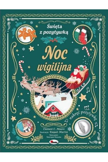 KSIĄŻKA w twardej oprawie z POZYTYWKĄ – idealny pomysł na PREZENT. PEŁNY ŚWIĄTECZNEJ MAGII wierszowany utwór należący do KLASYKI LITERATURY DZIECIĘCEJ oraz SYMPATYCZNE ilustracje. Świetne wprowadzenie w wyjątkowy nastrój ŚWIĄT BOŻEGO NARODZENIA. „Święta z pozytywką. Noc wigilijna” to historia o spotkaniu głównego bohatera ze ŚWIĘTYM MIKOŁAJEM. Śledząc opowieść, dziecko pozna tego wesołego, zażywnego staruszka, dowie się, jak MIKOŁAJ dostaje się do domu oraz w jaki sposób PREZENTY trafiają do WSZYSTKICH DZIECI NA ŚWIECIE. Książka idealna do czytania dziecku w okresie przygotowań do ŚWIĄT BOŻEGO NARODZENIA. Po nakręceniu pozytywki dziecko usłyszy „Deck the Halls”, tradycyjną kolędę angielską, jedną z najczęściej śpiewanych piosenek świątecznych. Książka wprowadza w świąteczny klimat przekazuje ważne wartości pobudza wyobraźnię kształtuje poczucie estetyki Święta z pozytywką To seria książek O TEMATYCE BOŻONARODZENIOWEJ. Dodatkowym atutem są POZYTYWKI ze świątecznymi melodiami. Książki mogą być doskonałym PREZENTEM, wprowadzają w ŚWIĄTECZNY NASTRÓJ.
