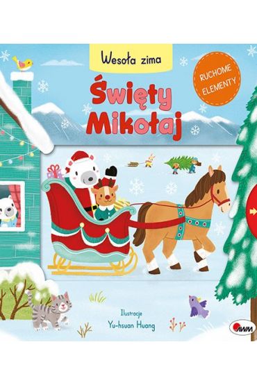 Książeczka z ruchomymi elementami – zawiera ELEMENTY, które maluszek może przesuwać. Wspiera wszechstronny rozwój dziecka – pobudza ZMYSŁY WZROKU I DOTYKU, rozwija WYOBRAŹNIĘ PRZESTRZENNĄ. Prezentuje opowieść o ZIMIE i ŚWIĘTYM MIKOŁAJU. Zawiera proste i krótkie TEKSTY. Książka wprowadza dzieci w klimat ŚWIĄT BOŻEGO NARODZENIA. Mali czytelnicy znajdą w niej proste i krótkie TEKSTY o Świętym Mikołaju, który rozwozi prezenty. Wyróżnikiem publikacji są PRZESUWANE oraz RUCHOME ELEMENTY, dzięki którym dziecko może AKTYWNIE uczestniczyć w przygodach BOHATERÓW. Piękne, kolorowe ILUSTRACJE pomogą zapoznać się z mieszkańcami zimowej krainy. Książka: działa na RÓŻNE ZMYSŁY: WZROK, DOTYK rozwija WYOBRAŹNIĘ wzbogaca SŁOWNICTWO Wesoła zima Seria książeczek z przesuwanymi i RUCHOMYMI ELEMENTAMI. Wprowadza w klimat ŚWIĄT BOŻEGO NARODZENIA. Uwagę przyciągają SYMPATYCZNE ILUSTRACJE oraz KRÓTKIE TEKSTY.