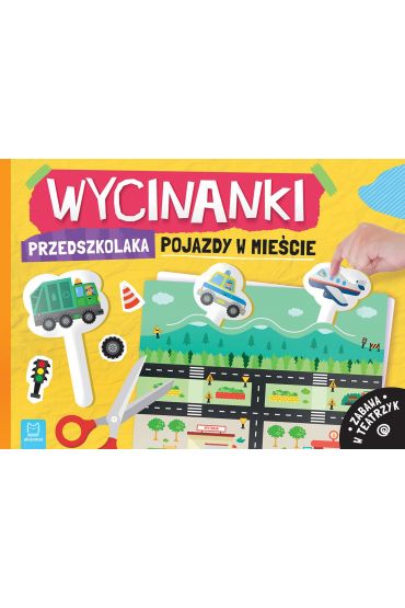 Wycinanki przedszkolaka. Pojazdy w mieście. Zabawa w teatrzyk Ta książka to połączenie ćwiczeń w wycinaniu z zabawą w teatrzyk i poznawaniem pojazdów. Dziecko tworzy teatrzyk od podstaw – samodzielnie lub z pomocą dorosłego wycina pojazdy i umieszcza je na planszach, wymyślając opowieści i odgrywając każdego dnia inne scenki. Maluch może bawić się sam lub z innymi, wcielając się w określone role. W książce znajdują się następujące pojazdy do wycięcia skuter, taksówka, wóz strażacki, auto terenowe, karetka pogotowia, koparka, wóz policyjny, autobus, śmieciarka, furgonetka, samolot i statek pasażerski. Dziecko wycina pojazdy, dzięki perforacji z łatwością odrywa plansze i w nacięte otwory wkłada pojazdy na uchwytach. Porusza nimi i rozpoczyna zabawę w teatrzyk. Wycinając obrazki, maluch ćwiczy sprawność manualną – uczy się precyzji i cierpliwości, a bawiąc się w teatrzyk – rozwija wyobraźnię, kreatywność oraz kompetencje społeczne.