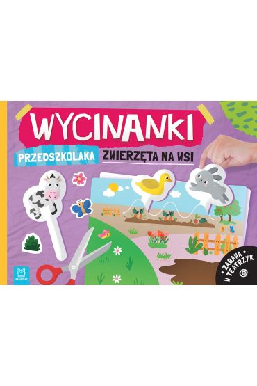 Wycinanki przedszkolaka. Zwierzęta na wsi. Zabawa w teatrzyk Ta książka to połączenie ćwiczeń w wycinaniu z zabawą w teatrzyk i poznawaniem zwierząt. Dziecko tworzy teatrzyk od podstaw – samodzielnie lub z pomocą dorosłego wycina zwierzątka i umieszcza je na planszach, wymyślając opowieści i odgrywając każdego dnia inne scenki. Maluch może bawić się sam lub z innymi, wcielając się w określone role. W książce znajdują się następujące zwierzęta do wycięcia kaczka, owieczka, krowa, zając, gęś, świnka, kot, pies, koń, ptaszek, lis i kura. Dziecko wycina zwierzątka, dzięki perforacji z łatwością odrywa plansze i w nacięte otwory wkłada zwierzątka na uchwytach. Porusza nimi i rozpoczyna zabawę w teatrzyk. Wycinając obrazki, maluch ćwiczy sprawność manualną – uczy się precyzji i cierpliwości, a bawiąc się w teatrzyk – rozwija wyobraźnię, kreatywność oraz kompetencje społeczne.