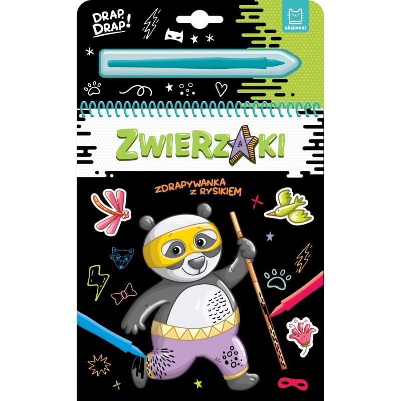 Użyj rysika jak magicznej różdżki, a na pokrytych czernią stronach wyczarujesz kolorowy świat niezwykłych zwierzaków. Czekają tu na ciebie: superlama, wyspany superleniwiec, superpanda w doskonałym humorze, szybka i zwinna superwydra, gotowy do pomocy superszop, karateka superjeż, zmagająca się z popularnością superpapuga, dzielny superflaming i sprytna supermałpka. Wyjmij rysik z opakowania i delikatnie zdrapuj nim czarną farbę. Zabawa z książką będzie jeszcze ciekawsza, jeśli wymyślisz wzory i ozdobisz nimi rysunki – mogą to być paski, kółka, kreski, zygzaki, a także kwiatki, motylki i pszczółki. Zamieszczone krótkie historyjki do każdego zwierzaka mogą być pierwszymi czytankami dla początkujących czytelników, a z pewnością przybliżą naszych bohaterów. Odpowiedz na pytania postawione na końcu każdej historyjki. Książeczki z serii „Zdrapywanka z rysikiem” to wspaniała zabawa kolorami i długie godziny spędzone na rysowaniu, które pobudzą wyobraźnię dziecka i rozwiną sprawność manualną. To sposób na doskonalenie koncentracji i dokładności. Dzięki małemu i wygodnemu formatowi są doskonałym pomysłem na zajęcie dziecka w czasie podróży. Baw się tą książką i odkrywaj magiczne ilustracje!
